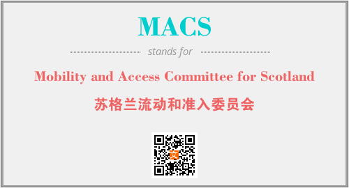上述内容是“Mobility and Access Committee for Scotland”作为“MACS”的缩写,解释为“苏格兰流动和准入委员会”时的信息,以及英文缩略词MACS所代表的英文单词,其对应的中文拼音、详细解释以及在英文中的流行度和相关分类、应用领域及应用示例等。