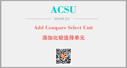 英文缩略词“ACSU”经常作为“Add Compare Select Unit”的英文缩写来使用,中文表示:“添加比较选择单元”。本文将详细介绍英文缩写词ACSU所代表英文单词,其对应的中文拼音、详细解释以及在英语中的流行度。此外,还有关于缩略词ACSU的分类、应用领域及相关应用示例等。