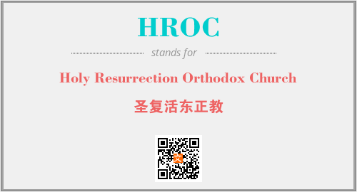 英文缩略词“HROC”经常作为“Holy Resurrection Orthodox Church”的英文缩写来使用,中文表示:“圣复活东正教”。本文将详细介绍英文缩写词HROC所代表英文单词,其对应的中文拼音、详细解释以及在英语中的流行度。此外,还有关于缩略词HROC的分类、应用领域及相关应用示例等。
