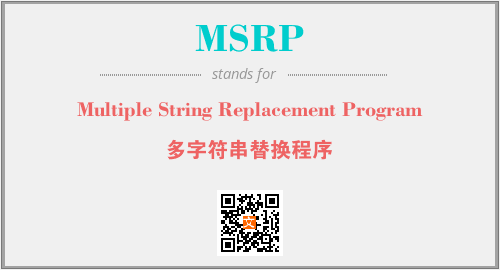 英文缩略词“MSRP”经常作为“Multiple String Replacement Program”的英文缩写来使用,中文表示:“多字符串替换程序”。本文将详细介绍英文缩写词MSRP所代表英文单词,其对应的中文拼音、详细解释以及在英语中的流行度。此外,还有关于缩略词MSRP的分类、应用领域及相关应用示例等。
