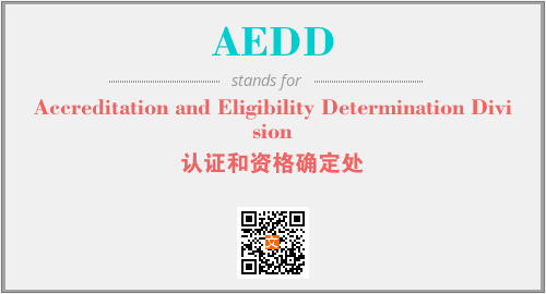上述内容是“Accreditation and Eligibility Determination Division”作为“AEDD”的缩写,解释为“认证和资格确定处”时的信息,以及英文缩略词AEDD所代表的英文单词,其对应的中文拼音、详细解释以及在英文中的流行度和相关分类、应用领域及应用示例等。