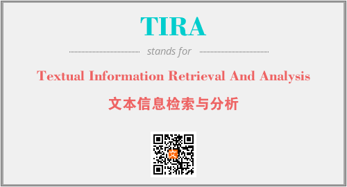 上述内容是“Textual Information Retrieval And Analysis”作为“TIRA”的缩写,解释为“文本信息检索与分析”时的信息,以及英文缩略词TIRA所代表的英文单词,其对应的中文拼音、详细解释以及在英文中的流行度和相关分类、应用领域及应用示例等。