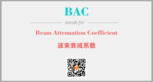 上述内容是“Beam Attenuation Coefficient”作为“BAC”的缩写,解释为“波束衰减系数”时的信息,以及英文缩略词BAC所代表的英文单词,其对应的中文拼音、详细解释以及在英文中的流行度和相关分类、应用领域及应用示例等。