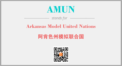 上述内容是“Arkansas Model United Nations”作为“AMUN”的缩写,解释为“阿肯色州模拟联合国”时的信息,以及英文缩略词AMUN所代表的英文单词,其对应的中文拼音、详细解释以及在英文中的流行度和相关分类、应用领域及应用示例等。