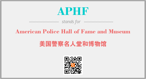上述内容是“American Police Hall of Fame and Museum”作为“APHF”的缩写,解释为“美国警察名人堂和博物馆”时的信息,以及英文缩略词APHF所代表的英文单词,其对应的中文拼音、详细解释以及在英文中的流行度和相关分类、应用领域及应用示例等。
