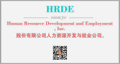 上述内容是“Human Resource Development and Employment, Inc.”作为“HRDE”的缩写,解释为“股份有限公司人力资源开发与就业公司。”时的信息,以及英文缩略词HRDE所代表的英文单词,其对应的中文拼音、详细解释以及在英文中的流行度和相关分类、应用领域及应用示例等。
