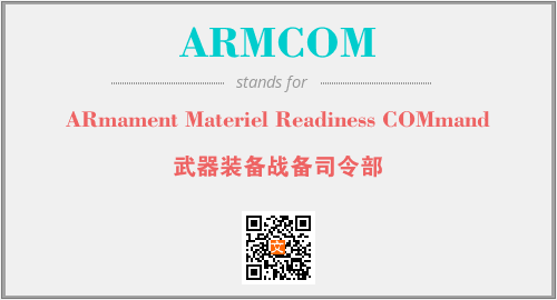 英文缩略词“ARMCOM”经常作为“ARmament Materiel Readiness COMmand”的英文缩写来使用,中文表示:“武器装备战备司令部”。本文将详细介绍英文缩写词ARMCOM所代表英文单词,其对应的中文拼音、详细解释以及在英语中的流行度。此外,还有关于缩略词ARMCOM的分类、应用领域及相关应用示例等。