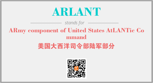 英文缩略词“ARLANT”经常作为“ARmy component of United States AtLANTic Command”的英文缩写来使用,中文表示:“美国大西洋司令部陆军部分”。本文将详细介绍英文缩写词ARLANT所代表英文单词,其对应的中文拼音、详细解释以及在英语中的流行度。此外,还有关于缩略词ARLANT的分类、应用领域及相关应用示例等。