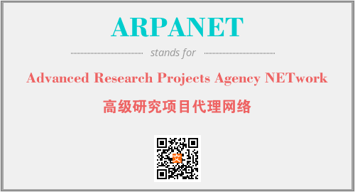 以上为Advanced Research Projects Agency NETwork英文缩略词ARPANET的中文解释,以及该英文缩写在英语的流行度、分类和应用领域方面的信息。
