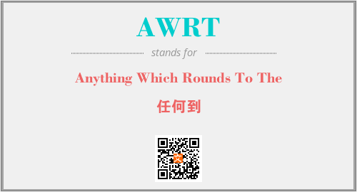 英文缩略词“AWRT”经常作为“Anything Which Rounds To The”的英文缩写来使用,中文表示:“任何到”。本文将详细介绍英文缩写词AWRT所代表英文单词,其对应的中文拼音、详细解释以及在英语中的流行度。此外,还有关于缩略词AWRT的分类、应用领域及相关应用示例等。