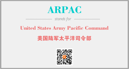 英文缩略词“ARPAC”经常作为“United States Army Pacific Command”的英文缩写来使用,中文表示:“美国陆军太平洋司令部”。本文将详细介绍英文缩写词ARPAC所代表英文单词,其对应的中文拼音、详细解释以及在英语中的流行度。此外,还有关于缩略词ARPAC的分类、应用领域及相关应用示例等。