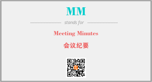 英文缩略词“MM”经常作为“Meeting Minutes”的英文缩写来使用,中文表示:“会议纪要”。本文将详细介绍英文缩写词MM所代表英文单词,其对应的中文拼音、详细解释以及在英语中的流行度。此外,还有关于缩略词MM的分类、应用领域及相关应用示例等。