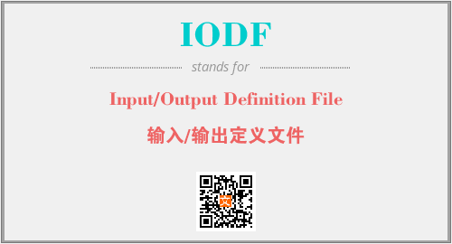 上述内容是“Input/Output Definition File”作为“IODF”的缩写,解释为“输入/输出定义文件”时的信息,以及英文缩略词IODF所代表的英文单词,其对应的中文拼音、详细解释以及在英文中的流行度和相关分类、应用领域及应用示例等。