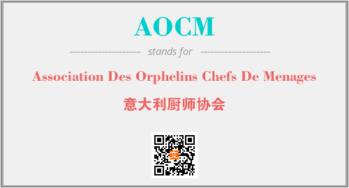 上述内容是“Association Des Orphelins Chefs De Menages”作为“AOCM”的缩写,解释为“意大利厨师协会”时的信息,以及英文缩略词AOCM所代表的英文单词,其对应的中文拼音、详细解释以及在英文中的流行度和相关分类、应用领域及应用示例等。