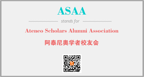 英文缩略词“ASAA”经常作为“Ateneo Scholars Alumni Association”的英文缩写来使用,中文表示:“阿泰尼奥学者校友会”。本文将详细介绍英文缩写词ASAA所代表英文单词,其对应的中文拼音、详细解释以及在英语中的流行度。此外,还有关于缩略词ASAA的分类、应用领域及相关应用示例等。