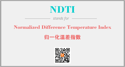 上述内容是“Normalized Difference Temperature Index”作为“NDTI”的缩写,解释为“归一化温差指数”时的信息,以及英文缩略词NDTI所代表的英文单词,其对应的中文拼音、详细解释以及在英文中的流行度和相关分类、应用领域及应用示例等。
