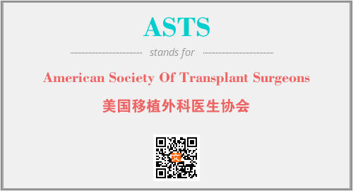 以上为American Society Of Transplant Surgeons英文缩略词ASTS的中文解释,以及该英文缩写在英语的流行度、分类和应用领域方面的信息。