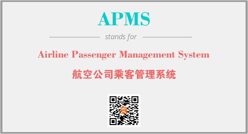 英文缩略词“APMS”经常作为“Airline Passenger Management System”的英文缩写来使用,中文表示:“航空公司乘客管理系统”。本文将详细介绍英文缩写词APMS所代表英文单词,其对应的中文拼音、详细解释以及在英语中的流行度。此外,还有关于缩略词APMS的分类、应用领域及相关应用示例等。