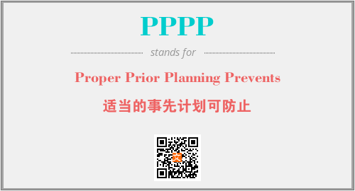 以上为Proper Prior Planning Prevents英文缩略词PPPP的中文解释,以及该英文缩写在英语的流行度、分类和应用领域方面的信息。