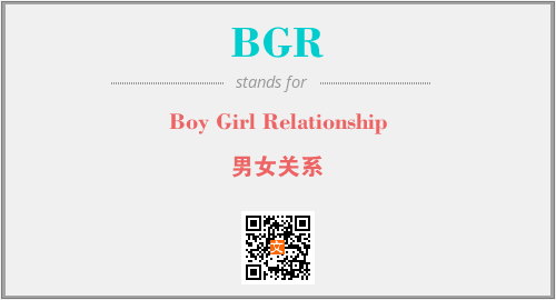 以上为Boy Girl Relationship英文缩略词BGR的中文解释,以及该英文缩写在英语的流行度、分类和应用领域方面的信息。