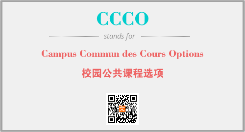 英文缩略词“CCCO”经常作为“Campus Commun des Cours Options”的英文缩写来使用,中文表示:“校园公共课程选项”。本文将详细介绍英文缩写词CCCO所代表英文单词,其对应的中文拼音、详细解释以及在英语中的流行度。此外,还有关于缩略词CCCO的分类、应用领域及相关应用示例等。