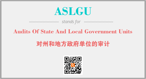英文缩略词“ASLGU”经常作为“Audits Of State And Local Government Units”的英文缩写来使用,中文表示:“对州和地方政府单位的审计”。本文将详细介绍英文缩写词ASLGU所代表英文单词,其对应的中文拼音、详细解释以及在英语中的流行度。此外,还有关于缩略词ASLGU的分类、应用领域及相关应用示例等。