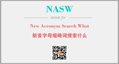 英文缩略词“NASW”经常作为“New Acronym Search What”的英文缩写来使用,中文表示:“新首字母缩略词搜索什么”。本文将详细介绍英文缩写词NASW所代表英文单词,其对应的中文拼音、详细解释以及在英语中的流行度。此外,还有关于缩略词NASW的分类、应用领域及相关应用示例等。