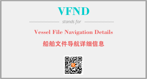 上述内容是“Vessel File Navigation Details”作为“VFND”的缩写,解释为“船舶文件导航详细信息”时的信息,以及英文缩略词VFND所代表的英文单词,其对应的中文拼音、详细解释以及在英文中的流行度和相关分类、应用领域及应用示例等。