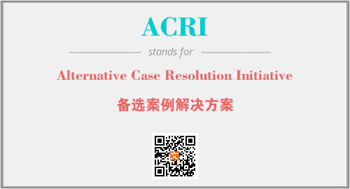 上述内容是“Alternative Case Resolution Initiative”作为“ACRI”的缩写,解释为“备选案例解决方案”时的信息,以及英文缩略词ACRI所代表的英文单词,其对应的中文拼音、详细解释以及在英文中的流行度和相关分类、应用领域及应用示例等。