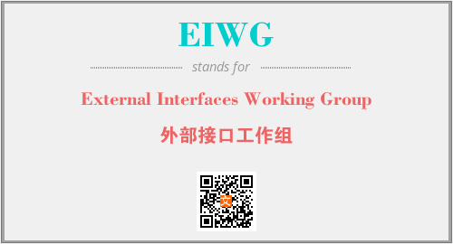 英文缩略词“EIWG”经常作为“External Interfaces Working Group”的英文缩写来使用,中文表示:“外部接口工作组”。本文将详细介绍英文缩写词EIWG所代表英文单词,其对应的中文拼音、详细解释以及在英语中的流行度。此外,还有关于缩略词EIWG的分类、应用领域及相关应用示例等。