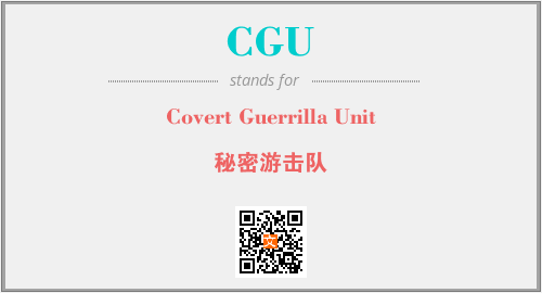 上述内容是“Covert Guerrilla Unit”作为“CGU”的缩写,解释为“秘密游击队”时的信息,以及英文缩略词CGU所代表的英文单词,其对应的中文拼音、详细解释以及在英文中的流行度和相关分类、应用领域及应用示例等。