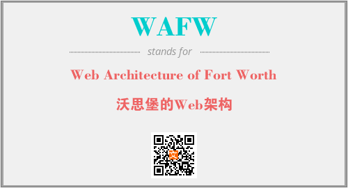上述内容是“Web Architecture of Fort Worth”作为“WAFW”的缩写,解释为“沃思堡的Web架构”时的信息,以及英文缩略词WAFW所代表的英文单词,其对应的中文拼音、详细解释以及在英文中的流行度和相关分类、应用领域及应用示例等。