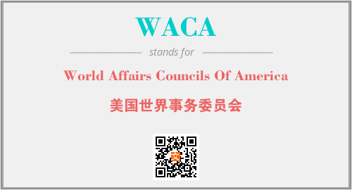 上述内容是“World Affairs Councils Of America”作为“WACA”的缩写,解释为“美国世界事务委员会”时的信息,以及英文缩略词WACA所代表的英文单词,其对应的中文拼音、详细解释以及在英文中的流行度和相关分类、应用领域及应用示例等。