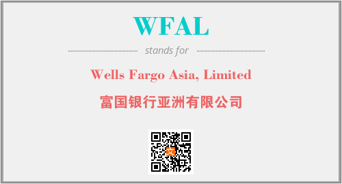 上述内容是“Wells Fargo Asia, Limited”作为“WFAL”的缩写,解释为“富国银行亚洲有限公司”时的信息,以及英文缩略词WFAL所代表的英文单词,其对应的中文拼音、详细解释以及在英文中的流行度和相关分类、应用领域及应用示例等。