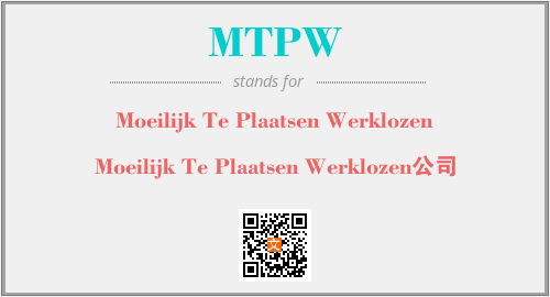 上述内容是“Moeilijk Te Plaatsen Werklozen”作为“MTPW”的缩写,解释为“Moeilijk Te Plaatsen Werklozen公司”时的信息,以及英文缩略词MTPW所代表的英文单词,其对应的中文拼音、详细解释以及在英文中的流行度和相关分类、应用领域及应用示例等。