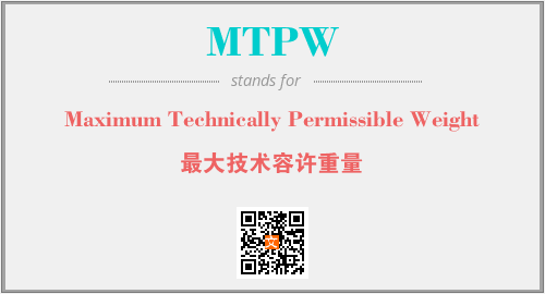 英文缩略词“MTPW”经常作为“Maximum Technically Permissible Weight”的英文缩写来使用,中文表示:“最大技术容许重量”。本文将详细介绍英文缩写词MTPW所代表英文单词,其对应的中文拼音、详细解释以及在英语中的流行度。此外,还有关于缩略词MTPW的分类、应用领域及相关应用示例等。