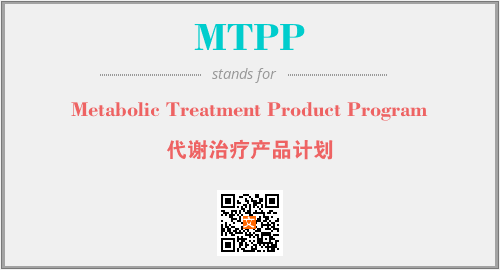 上述内容是“Metabolic Treatment Product Program”作为“MTPP”的缩写,解释为“代谢治疗产品计划”时的信息,以及英文缩略词MTPP所代表的英文单词,其对应的中文拼音、详细解释以及在英文中的流行度和相关分类、应用领域及应用示例等。