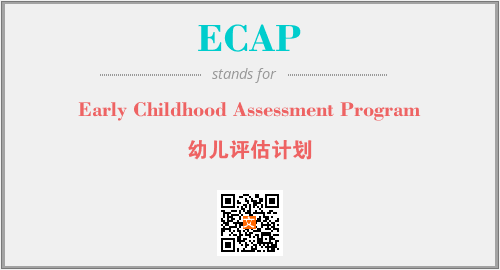 英文缩略词“ECAP”经常作为“Early Childhood Assessment Program”的英文缩写来使用,中文表示:“幼儿评估计划”。本文将详细介绍英文缩写词ECAP所代表英文单词,其对应的中文拼音、详细解释以及在英语中的流行度。此外,还有关于缩略词ECAP的分类、应用领域及相关应用示例等。