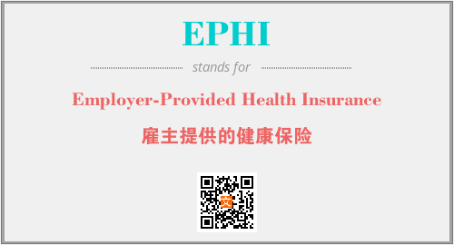 上述内容是“Employer-Provided Health Insurance”作为“EPHI”的缩写,解释为“雇主提供的健康保险”时的信息,以及英文缩略词EPHI所代表的英文单词,其对应的中文拼音、详细解释以及在英文中的流行度和相关分类、应用领域及应用示例等。