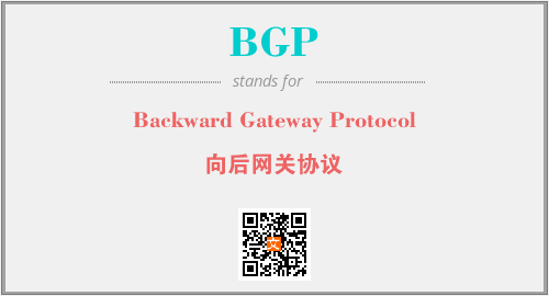 英文缩略词“BGP”经常作为“Backward Gateway Protocol”的英文缩写来使用,中文表示:“向后网关协议”。本文将详细介绍英文缩写词BGP所代表英文单词,其对应的中文拼音、详细解释以及在英语中的流行度。此外,还有关于缩略词BGP的分类、应用领域及相关应用示例等。