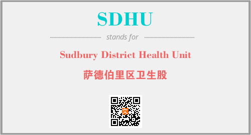 英文缩略词“SDHU”经常作为“Sudbury District Health Unit”的英文缩写来使用,中文表示:“萨德伯里区卫生股”。本文将详细介绍英文缩写词SDHU所代表英文单词,其对应的中文拼音、详细解释以及在英语中的流行度。此外,还有关于缩略词SDHU的分类、应用领域及相关应用示例等。