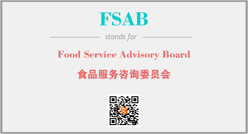 以上为Food Service Advisory Board英文缩略词FSAB的中文解释,以及该英文缩写在英语的流行度、分类和应用领域方面的信息。