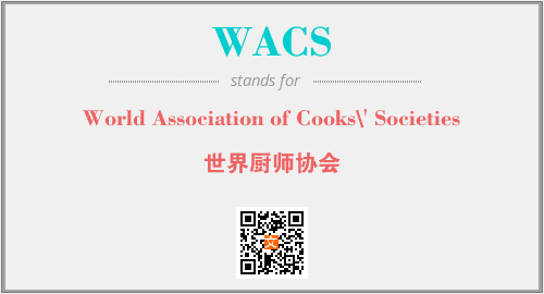 英文缩略词“WACS”经常作为“World Association of Cooks\' Societies”的英文缩写来使用,中文表示:“世界厨师协会”。本文将详细介绍英文缩写词WACS所代表英文单词,其对应的中文拼音、详细解释以及在英语中的流行度。此外,还有关于缩略词WACS的分类、应用领域及相关应用示例等。