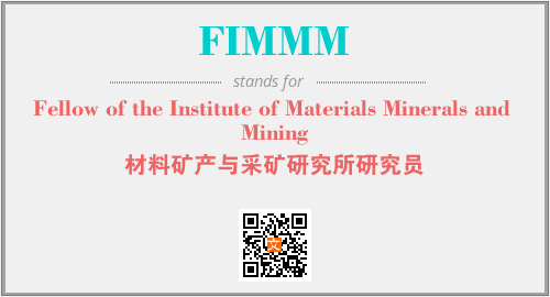 上述内容是“Fellow of the Institute of Materials Minerals and Mining”作为“FIMMM”的缩写,解释为“材料矿产与采矿研究所研究员”时的信息,以及英文缩略词FIMMM所代表的英文单词,其对应的中文拼音、详细解释以及在英文中的流行度和相关分类、应用领域及应用示例等。