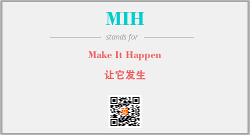 以上为Make It Happen英文缩略词MIH的中文解释,以及该英文缩写在英语的流行度、分类和应用领域方面的信息。