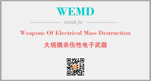 以上为Weapons Of Electrical Mass Destruction英文缩略词WEMD的中文解释,以及该英文缩写在英语的流行度、分类和应用领域方面的信息。