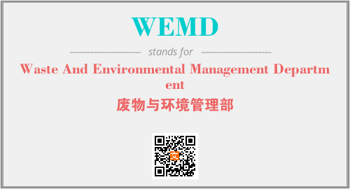英文缩略词“WEMD”经常作为“Waste And Environmental Management Department”的英文缩写来使用,中文表示:“废物与环境管理部”。本文将详细介绍英文缩写词WEMD所代表英文单词,其对应的中文拼音、详细解释以及在英语中的流行度。此外,还有关于缩略词WEMD的分类、应用领域及相关应用示例等。