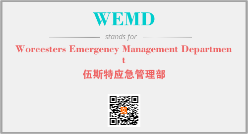 上述内容是“Worcesters Emergency Management Department”作为“WEMD”的缩写,解释为“伍斯特应急管理部”时的信息,以及英文缩略词WEMD所代表的英文单词,其对应的中文拼音、详细解释以及在英文中的流行度和相关分类、应用领域及应用示例等。