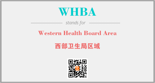 上述内容是“Western Health Board Area”作为“WHBA”的缩写,解释为“西部卫生局区域”时的信息,以及英文缩略词WHBA所代表的英文单词,其对应的中文拼音、详细解释以及在英文中的流行度和相关分类、应用领域及应用示例等。