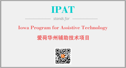 英文缩略词“IPAT”经常作为“Iowa Program for Assistive Technology”的英文缩写来使用,中文表示:“爱荷华州辅助技术项目”。本文将详细介绍英文缩写词IPAT所代表英文单词,其对应的中文拼音、详细解释以及在英语中的流行度。此外,还有关于缩略词IPAT的分类、应用领域及相关应用示例等。